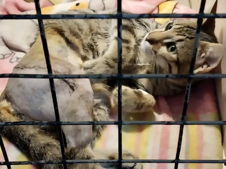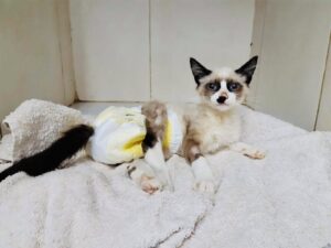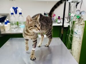 Coordinamos con su familia la intervención y Cleo se fue de alta a las 24 hs, ahora caminando con sus cuatro patas. Una pequeña muy valiente y adorable.
