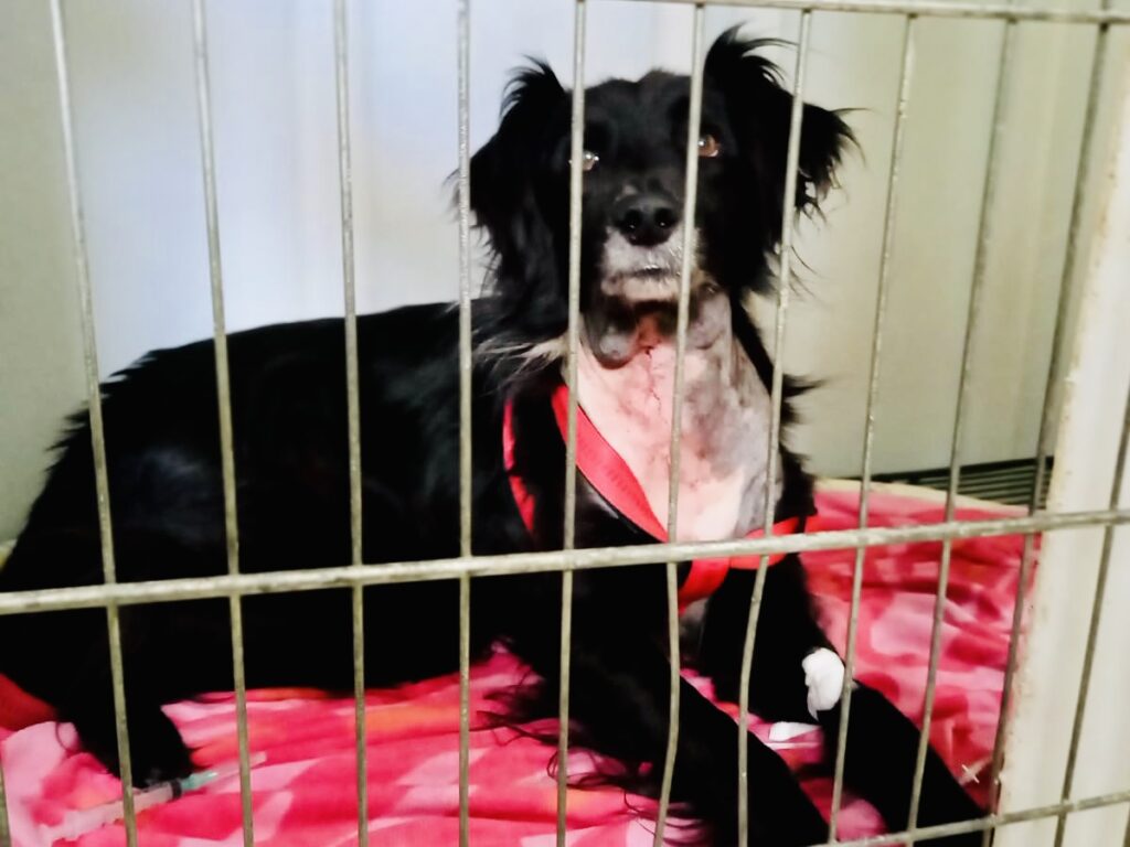 Recientemente atropellada, con fractura de segunda vértebra torácica y sin poder moverse fue abandonada en la Veterinaria. Luego de una semana de cuidados intensivos, empezó a moverse ya que le mandamos a hacer a medida un carro de 4 ruedas y pedalera. Sin embargo, ella necesitaba más asistencia ya que el carro la cansaba y ella no contaba con la fuerza ni los músculos para continuar ejercitándose. Fue entonces que apareció Gisela Gil, quien cada tarde, durante el tiempo que permaneció Negrita en la Veterinaria, se ocupó de acampañarla, mimarla, ayudarla a moverse y hacer ejercicios de rehabilitación. Un acto de tal nobleza que emociona.