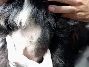 En el consultorio, realizando los chequeos de rutina correspondientes y luego de la citología y el estudio ecográfico, sumado a la zona donde se alojaba la masa, concluimos que se trataba de la glándula tiroides izquierda. Aconsejamos a su familia la intervención quirúrgica. De esta manera, no solo podríamos extirpar dicha masa y llegar al diagnóstico definitivo, sino también mejorar su calidad de vida ya que esta neoformación le estaba presionando el esófago provocándole serios inconvenientes al momento de alimentarse.