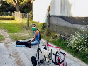Transcurrieron largos 9 meses de dedicación, donde le dimos la oportunidad de seguir viviendo, tratamos sus infecciones y su dolor, nos ocupamos de mantenerla limpia, calentita, alimentada, vacunada y desparasitada, logrando que pase de un estado completamente inmóvil a empezar a caminar asistida por sus patas delanteras y un carro, con la probabilidad de que sus patas posteriores corran la misma suerte y sin perder nunca la esperanza de lo que finalmente llegó para ella. ¡Fue adoptada! Yessica Aquino y Oscar Gomez le dieron su nuevo hogar y todos los cuidados que ella necesitaba. ¡No alcanzan las GRACIAS para semejante acto de amor!